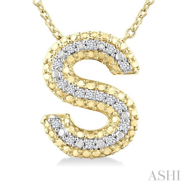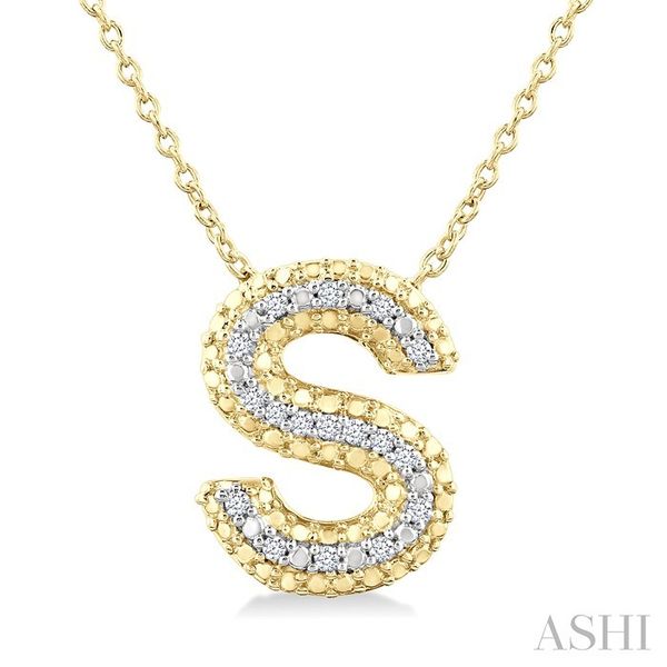 1/20 Ctw Bubble Accent Initial 'S' Round Cut Diamond Fashion Pendant With Chain in Yellow Gold Vermeil Image 2 Becker's Jewelers Burlington, IA