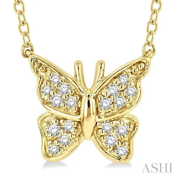 (319) 752-31961/20 Ctw Butterfly Petite Round Cut Diamond Fashion Pendant With Chain in 10K Yellow Gold