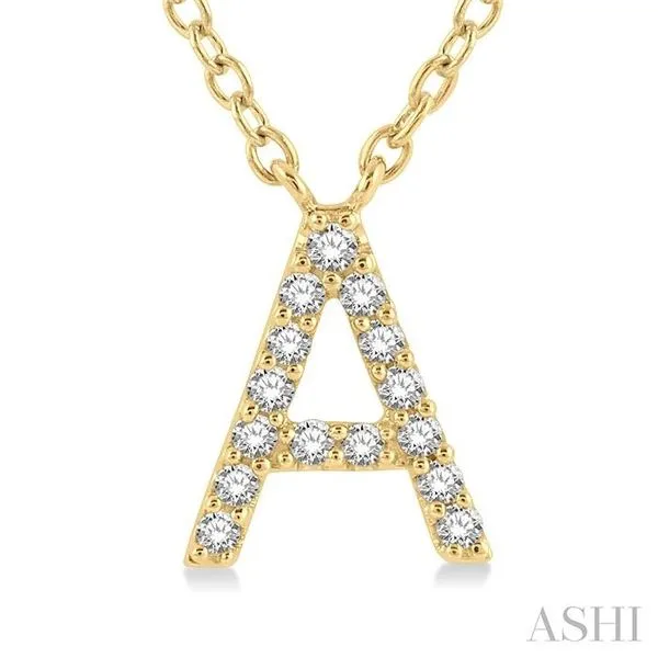 (319) 752-31961/20 Ctw Initial 'A' Round Cut Diamond Pendant With Chain in 14K Yellow Gold