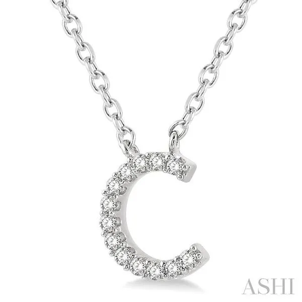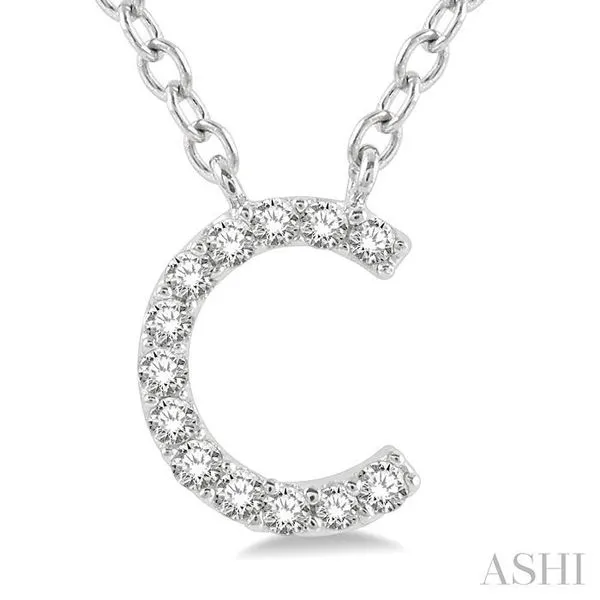 (319) 752-31961/20 Ctw Initial 'C' Round Cut Diamond Pendant With Chain in 10K White Gold
