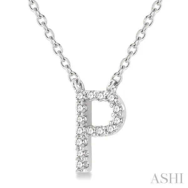 (319) 752-31961/20 Ctw Initial 'P' Round Cut Diamond Pendant With Chain in 14K White Gold