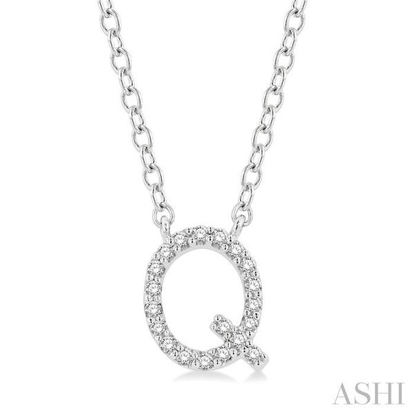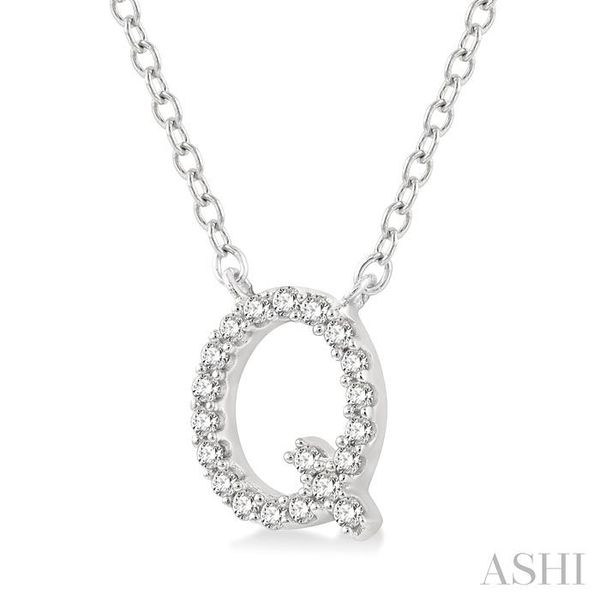 1/20 Ctw Initial 'Q' Round Cut Diamond Pendant With Chain in 14K White Gold Image 2 Becker's Jewelers Burlington, IA