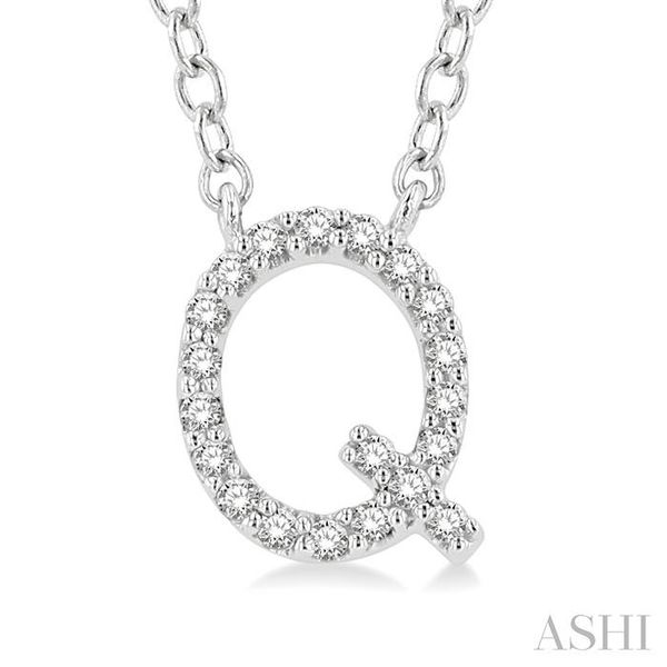 1/20 Ctw Initial 'Q' Round Cut Diamond Pendant With Chain in 14K White Gold Image 4 Becker's Jewelers Burlington, IA