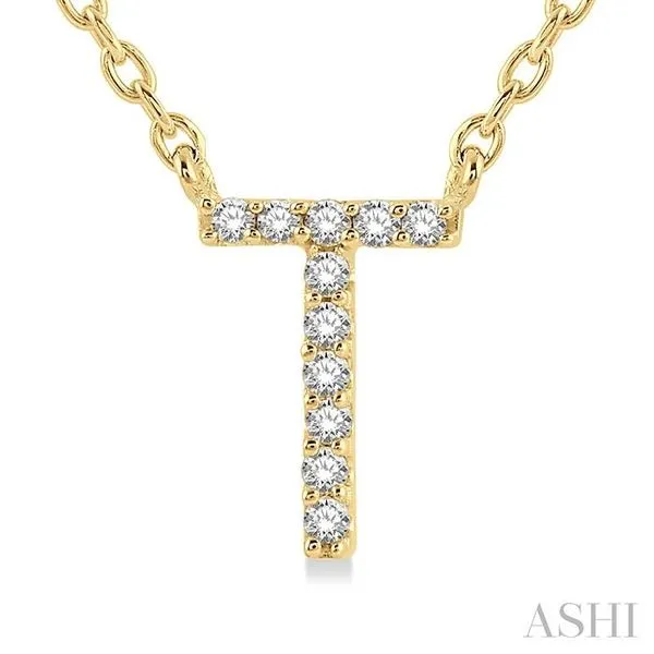 (319) 752-31961/20 Ctw Initial 'T' Round Cut Diamond Pendant With Chain in 14K Yellow Gold