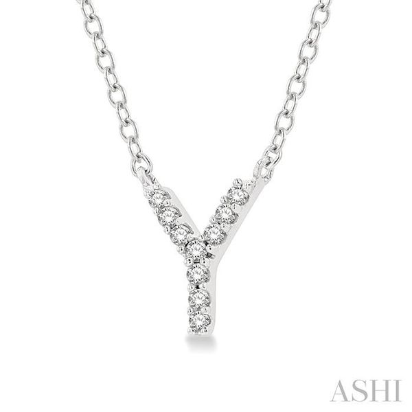 1/20 Ctw Initial 'Y' Round Cut Diamond Pendant With Chain in 14K White Gold Image 2 Becker's Jewelers Burlington, IA