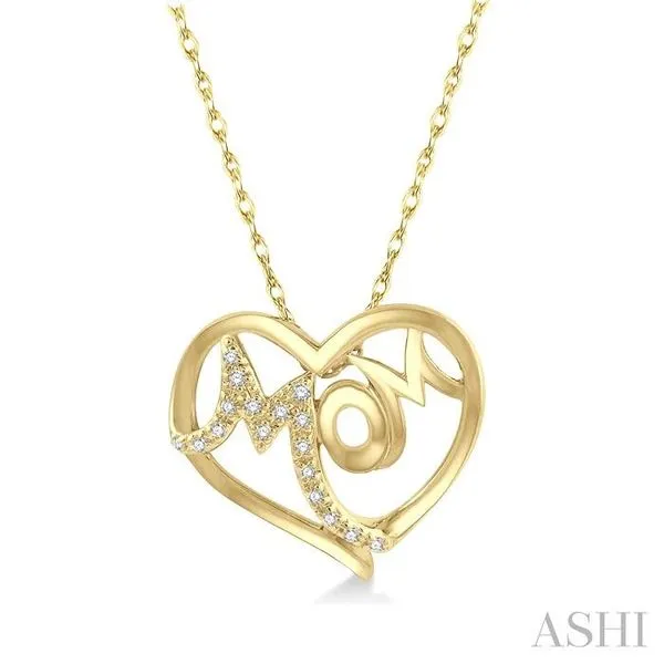 (319) 752-31961/20 Ctw MOM Round Cut Diamond Heart Pendant With Chain in 10K Yellow Gold