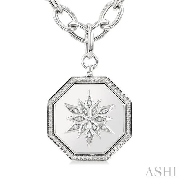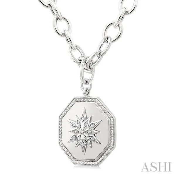 (319) 752-31961/20 Ctw Octagon Shape medallion Single Cut Diamond Star Pendant With Chain in Sterling Silver