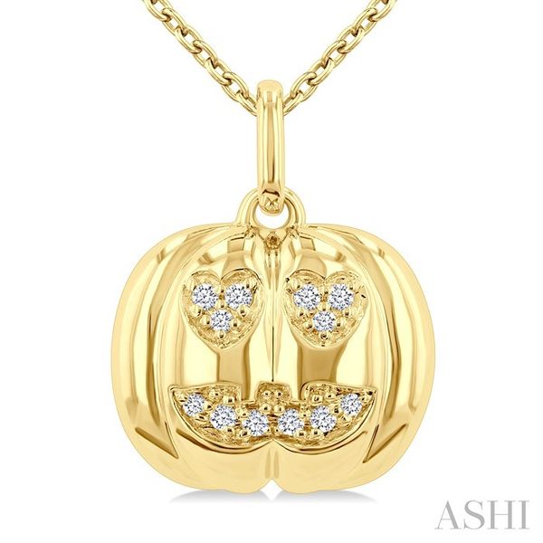 3. 1/20 Ctw Petite Pumpkin Round Cut Diamond Fashion Pendant With Chain in 10K Yellow Gold