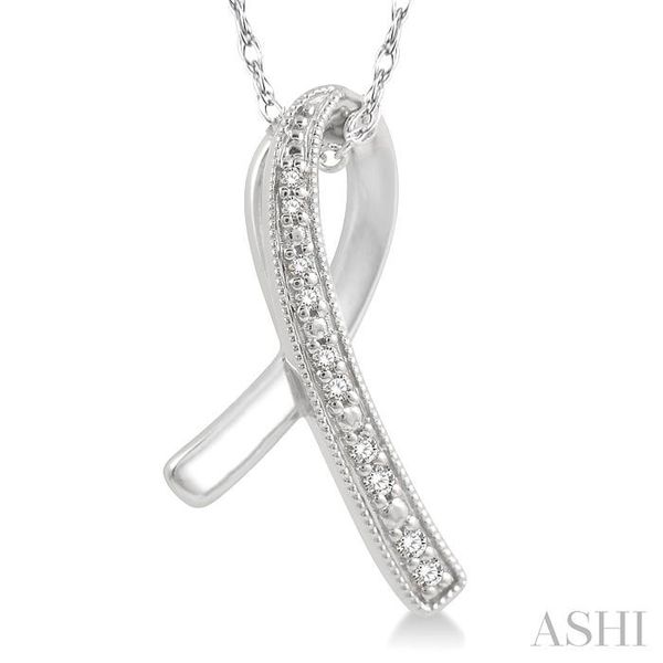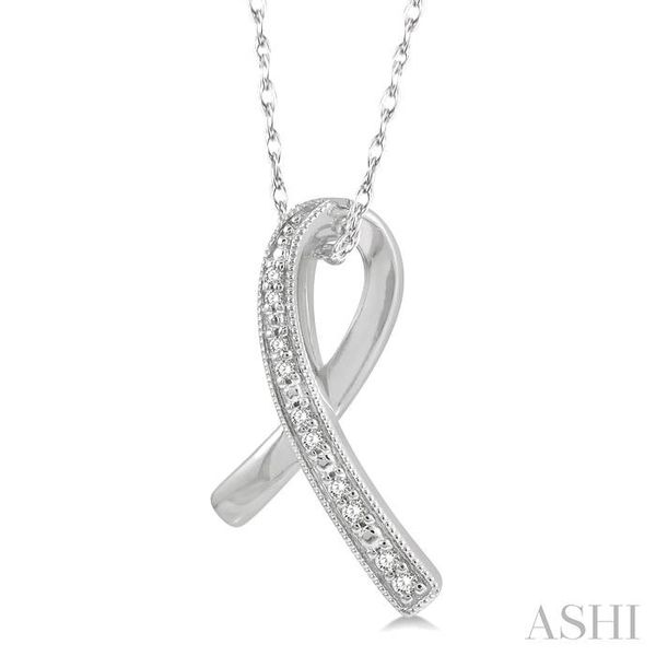 1/20 Ctw Round Cut Diamond Awareness Ribbon Pendant With Chain in 10K White Gold Image 2 Becker's Jewelers Burlington, IA