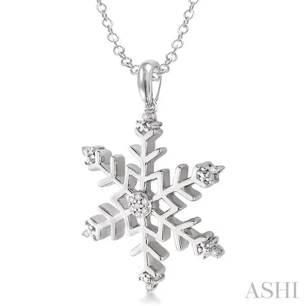 (319) 752-31961/20 Ctw Single Cut Diamond Snowflake Pendant in Sterling Silver with Chain