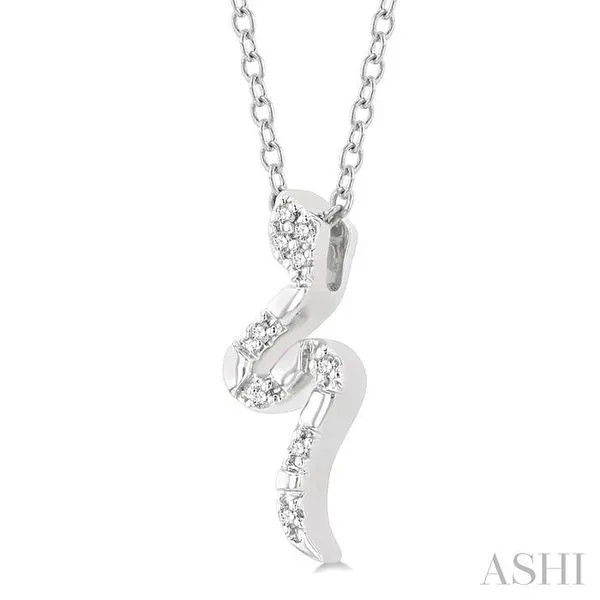 (319) 752-31961/20 Ctw Snake Petite Round Cut Diamond Fashion Pendant With Chain in 10K White Gold