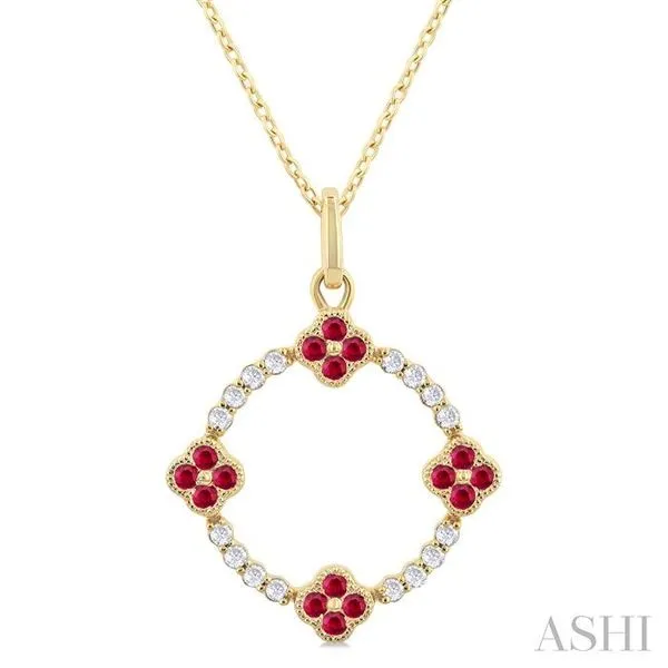 (319) 752-31961.25 MM Clover Circle Ruby and 1/8 Ctw Round Cut Diamond Precious Pendant With Chain in 10K Yellow Gold