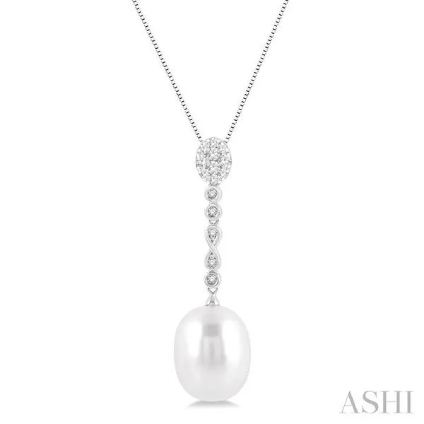 (319) 752-319612x10 MM Cultured Pearl and 1/5 Ctw Hanging Round Cut Diamond Drop Lovebright Pendant With Chain in 14K White Gold