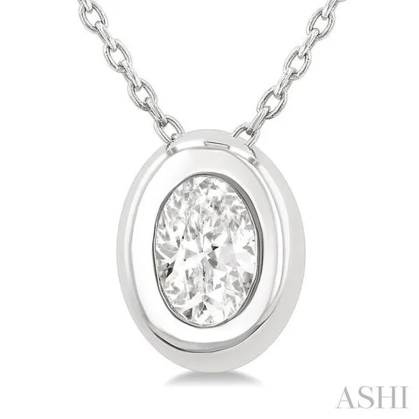 (319) 752-31961/3 Ctw Bezel Set Oval Cut Diamond Bubble Fashion Pendant With Chain in 14K White Gold