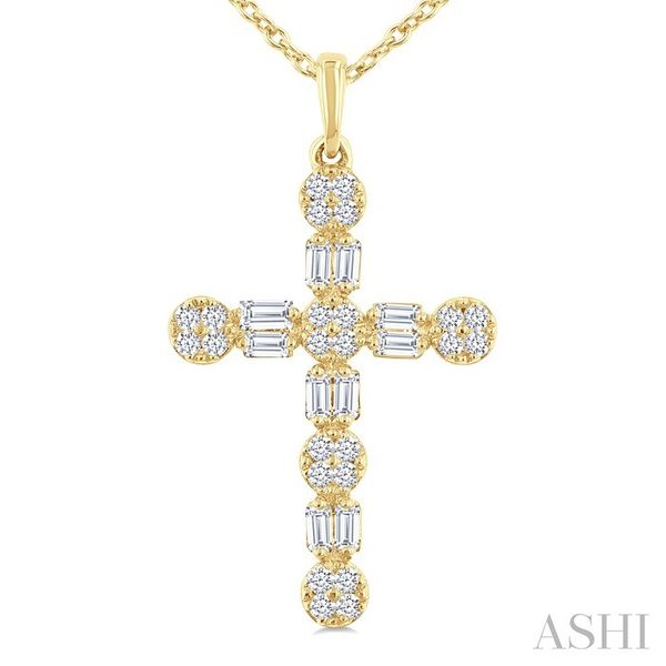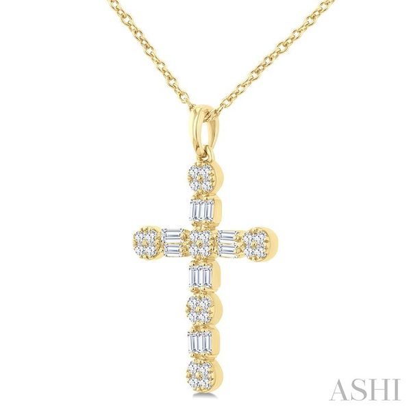 1/3 Ctw Floral Cross Fusion Baguette and Round Cut Diamond Fashion Pendant With Chain in 14K Yellow Gold Image 3 Becker's Jewelers Burlington, IA