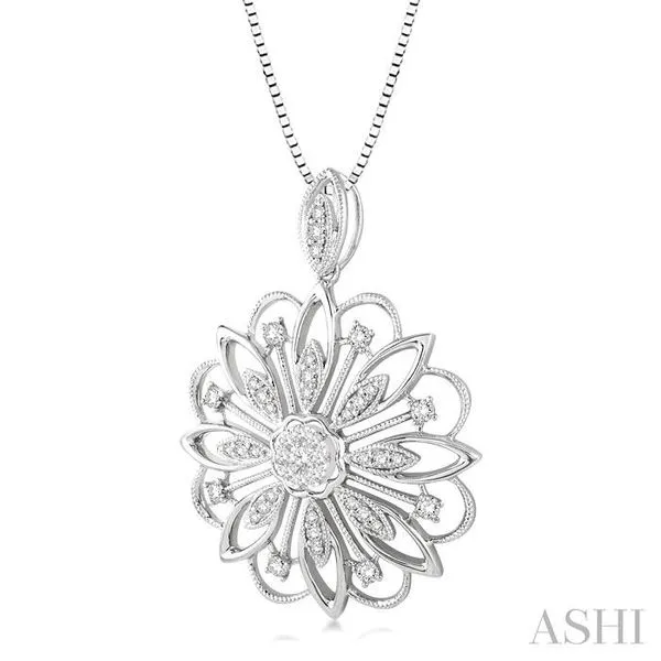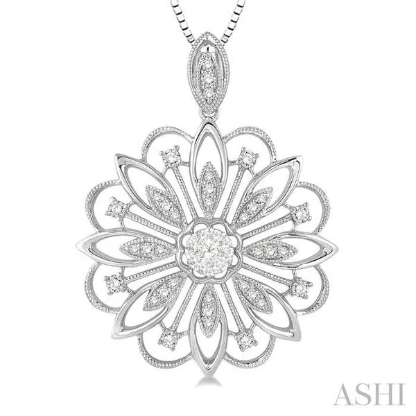 (319) 752-31961/3 Ctw Floral Lattice Lovebright Round Cut Diamond Pendant With Chain in 14K White Gold
