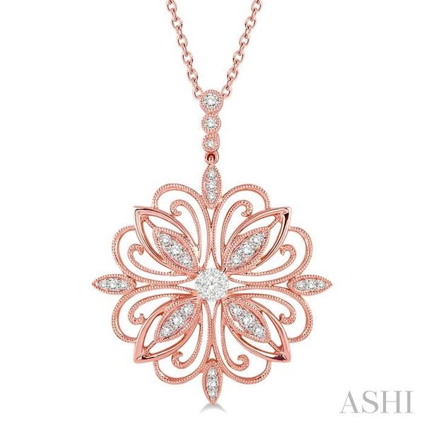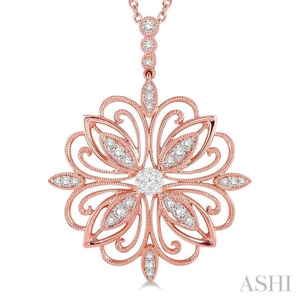 1/3 Ctw Lattice Floral Pattern Lovebright Round Cut Diamond Pendant With Chain in 14K Rose and White Gold Image 3 Becker's Jewelers Burlington, IA
