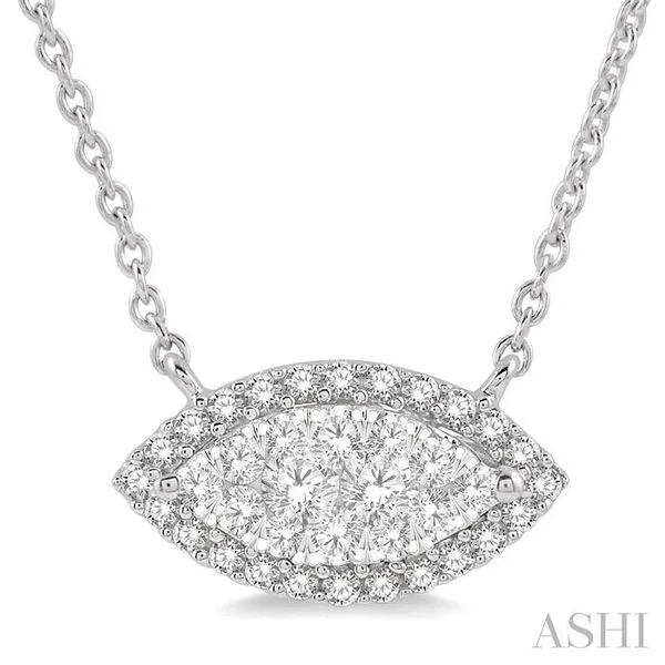 (319) 752-31961/3 Ctw Marquise Shape Round Cut Diamond Lovebright Pendant With Chain in 14K White Gold