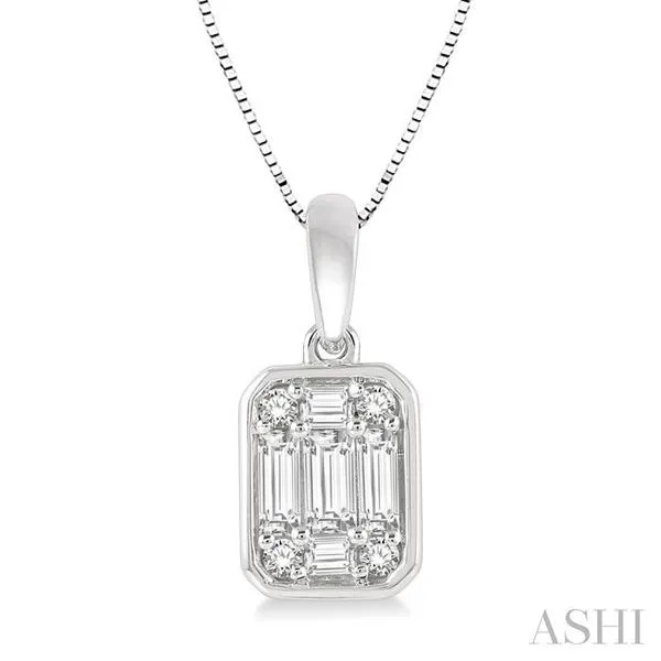 (319) 752-31961/3 Ctw Octagonal Shape Baguette and Round Cut Diamond Pendant With Chain in 14K White Gold