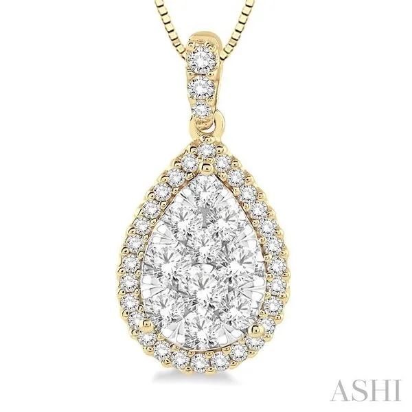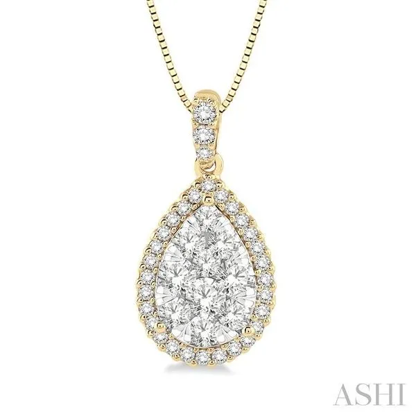 (319) 752-31961/3 Ctw Pear Shape Diamond Lovebright Pendant in 14K Yellow and White Gold with Chain