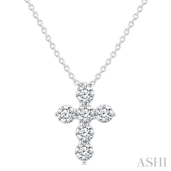 (319) 752-31961/3 Ctw Round Cut Diamond Christian Cross 6-Stone Fashion Pendant With Chain in 14K White Gold