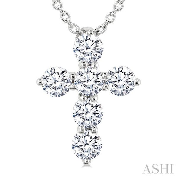 1/3 Ctw Round Cut Diamond Christian Cross 6-Stone Fashion Pendant With Chain in 14K White Gold Image 4 Becker's Jewelers Burlington, IA