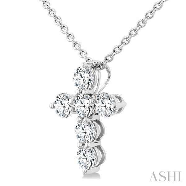 1/3 Ctw Round Cut Diamond Christian Cross 6-Stone Fashion Pendant With Chain in 14K White Gold Image 3 Becker's Jewelers Burlington, IA