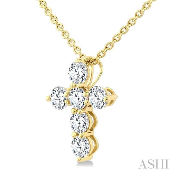 1/3 Ctw Round Cut Diamond Christian Cross 6-Stone Fashion Pendant With Chain in 14K Yellow Gold Image 2 Becker's Jewelers Burlington, IA
