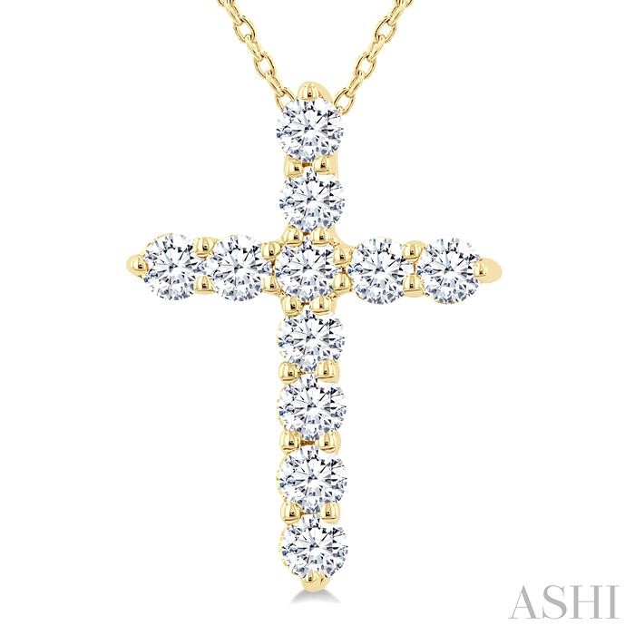 (319) 752-31961/3 Ctw Round Cut Diamond Cross Pendant With Chain in 14K Yellow Gold