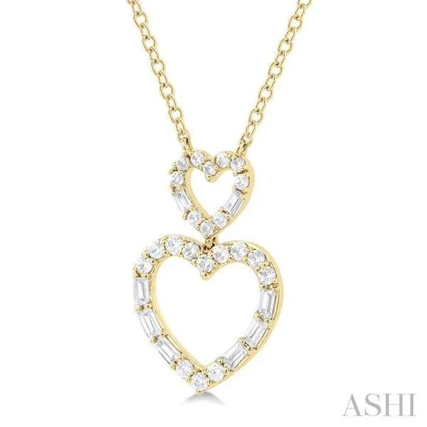 (319) 752-31961/3 Ctw Twin Heart Fusion Baguette and Round Cut Diamond Pendant With Chain in 10K Yellow Gold