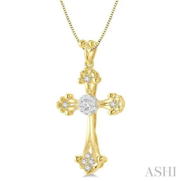 (319) 752-31961/4 Ctw Art Deco Lovebright Round Cut Diamond Cross Pendant in 14K Yellow and White Gold with chain