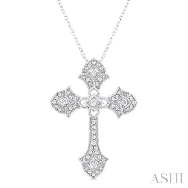 (319) 752-31961/4 Ctw Cross Round Cut Diamond Fashion Pendant With Chain in 14K White Gold