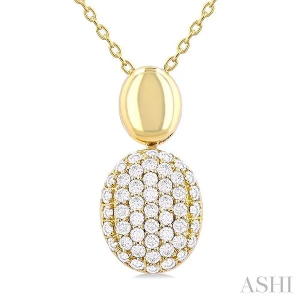 (319) 752-31961/4 Ctw Oval Shape Mount Pave Set Round Cut Diamond Pendant in 10K Yellow Gold with Chain
