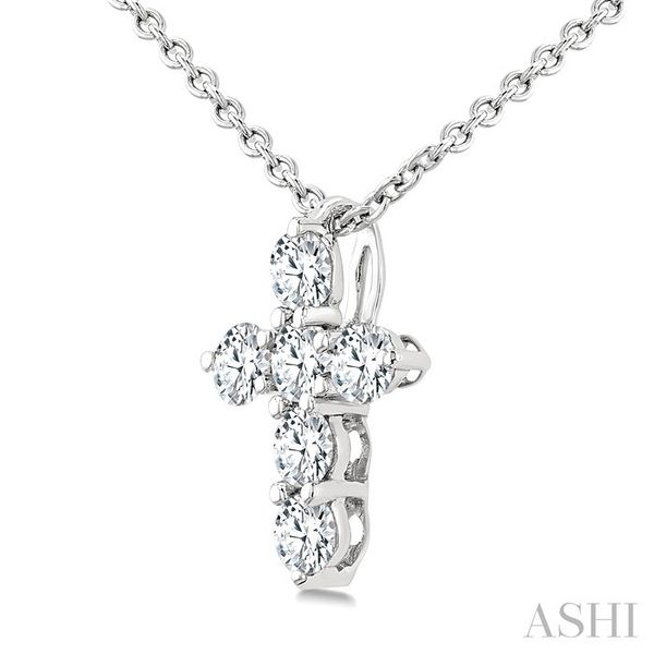1/4 Ctw Round Cut Diamond Christian Cross 6-Stone Fashion Pendant With Chain in 14K White Gold Image 3 Becker's Jewelers Burlington, IA