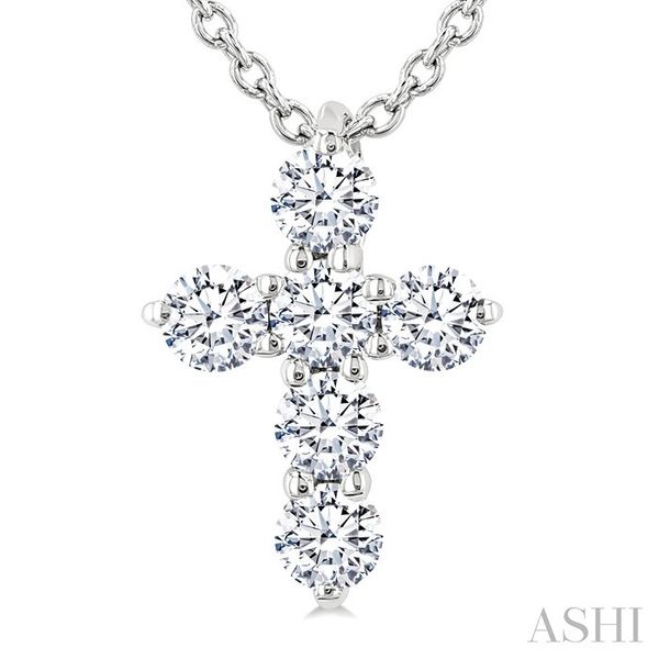1/4 Ctw Round Cut Diamond Christian Cross 6-Stone Fashion Pendant With Chain in 14K White Gold Image 2 Becker's Jewelers Burlington, IA