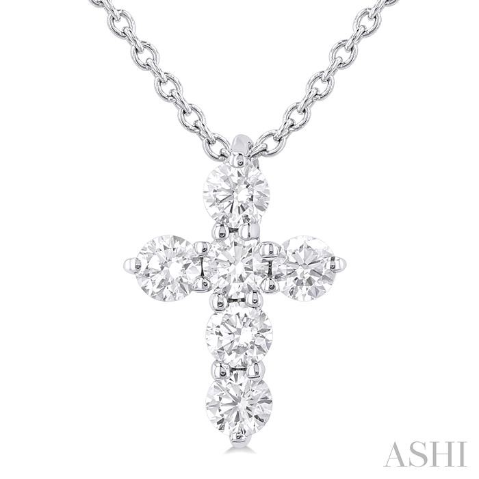 3. 1/4 Ctw Round Cut Diamond Christian Cross 6-Stone Fashion Pendant With Chain in 14K White Gold