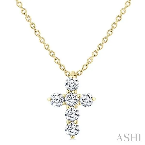 1/4 Ctw Round Cut Diamond Christian Cross 6-Stone Fashion Pendant With Chain in 14K Yellow Gold Becker's Jewelers Burlington, IA