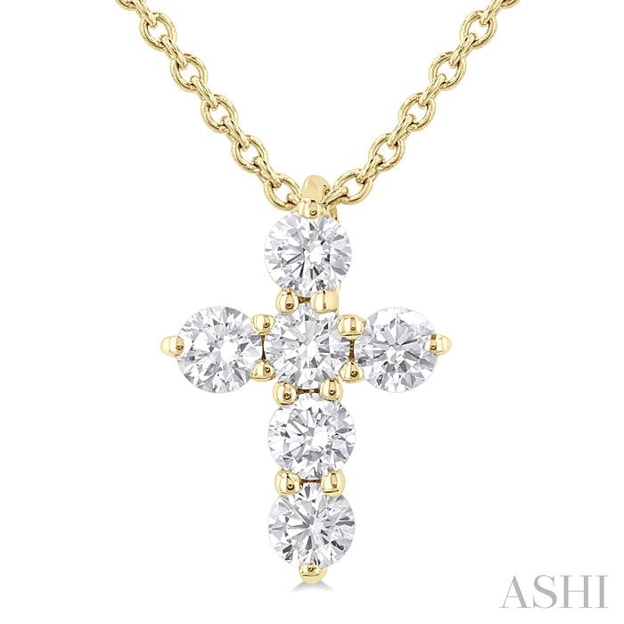 3. 1/4 Ctw Round Cut Diamond Christian Cross 6-Stone Fashion Pendant With Chain in 14K Yellow Gold