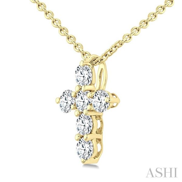1/4 Ctw Round Cut Diamond Christian Cross 6-Stone Fashion Pendant With Chain in 14K Yellow Gold Image 3 Becker's Jewelers Burlington, IA