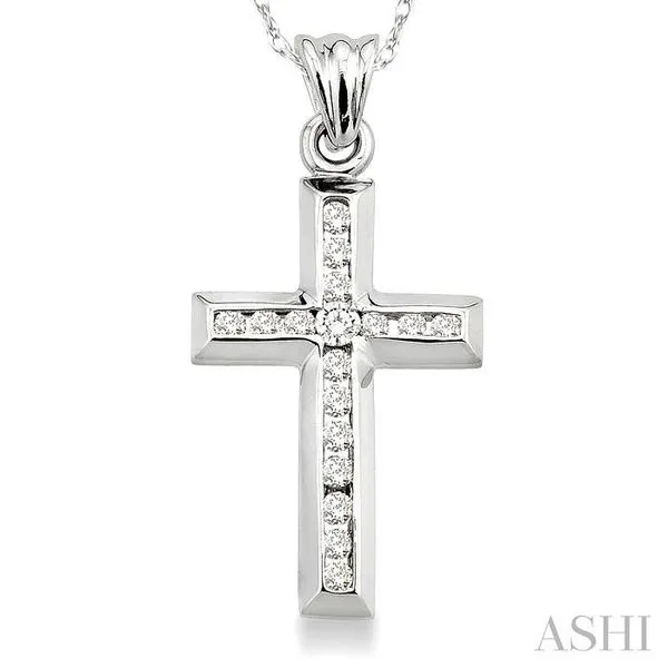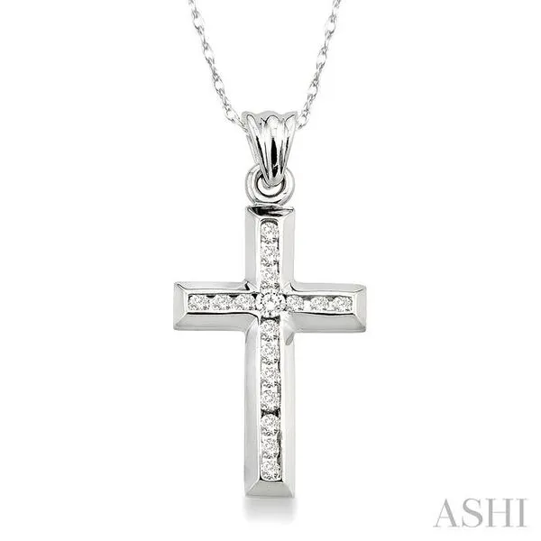 (319) 752-31961/4 Ctw Round Cut Diamond Cross Pendant in 10K White Gold with Chain