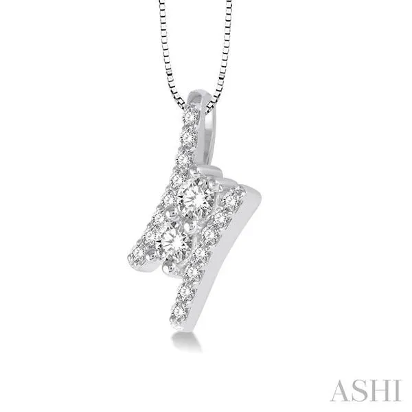 (319) 752-31961/4 Ctw Twin Center Parallel Bar Round Cut Diamond 2Stone Pendant With Link Chain in 14K White Gold