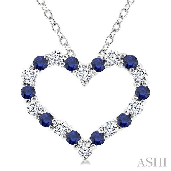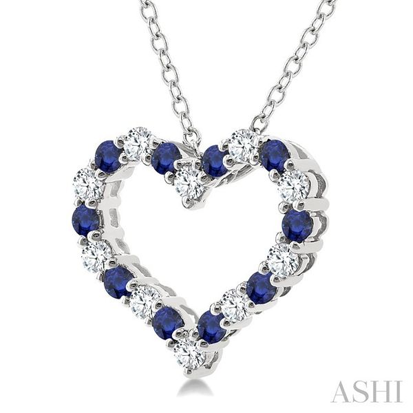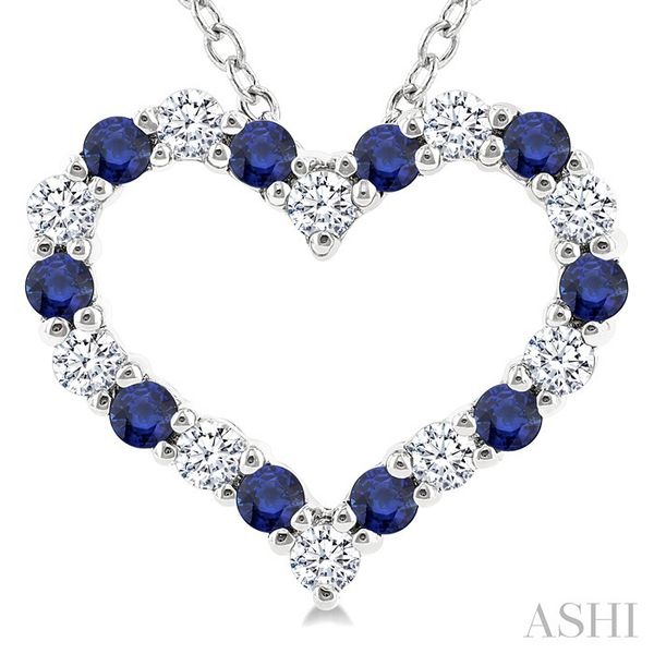 1.4 MM Round Cut Sapphire and 1/8 Ctw Open Heart Round Cut Diamond Precious Fashion Pendant With Chain in 14K White Gold Image 4 Becker's Jewelers Burlington, IA