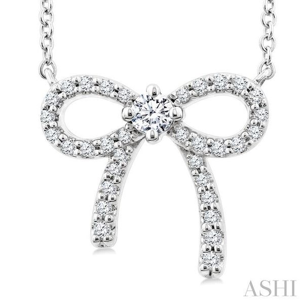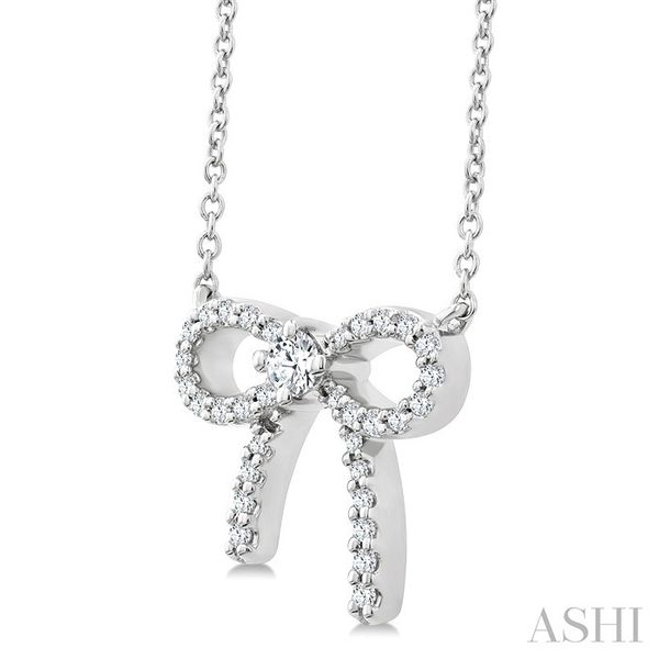 1/5 Ctw Bow Round Cut Diamond Petite Fashion Pendant With Chain in 10K White Gold Image 2 Becker's Jewelers Burlington, IA