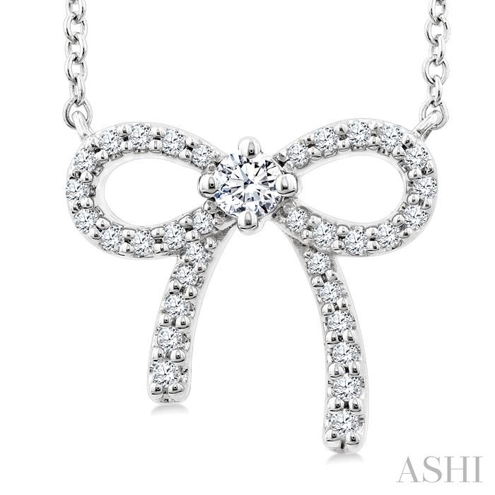 (319) 752-31961/5 Ctw Bow Round Cut Diamond Petite Fashion Pendant With Chain in 10K White Gold