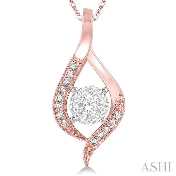 (319) 752-31961/5 Ctw Curved Lovebright Round Cut Diamond Pendant in 14K Rose and White Gold with chain