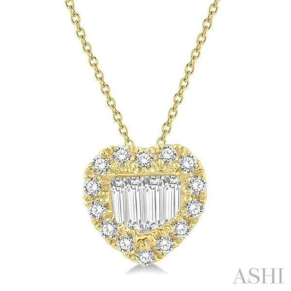 (319) 752-31961/5 Ctw Heart Shape Baguette Center & Round Cut Diamond Pendant With Chain in 14K Yellow Gold