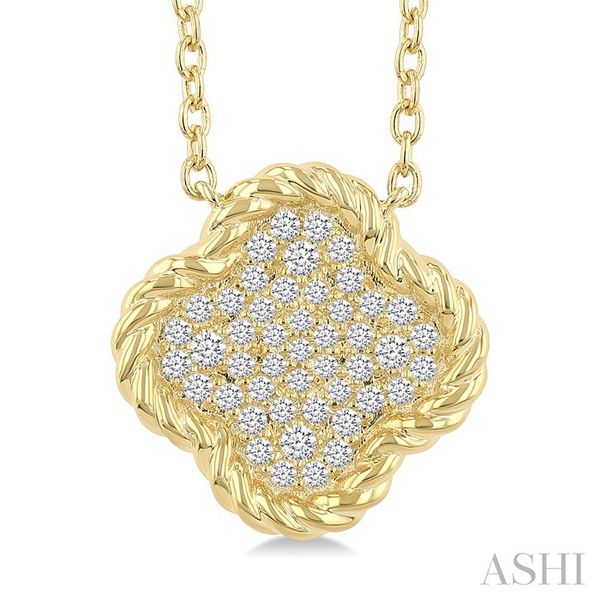 1/5 Ctw Round Cut Diamond Rope Border Clover Motif Fashion Pendant With Chain in 10K Yellow Gold Image 2 Becker's Jewelers Burlington, IA