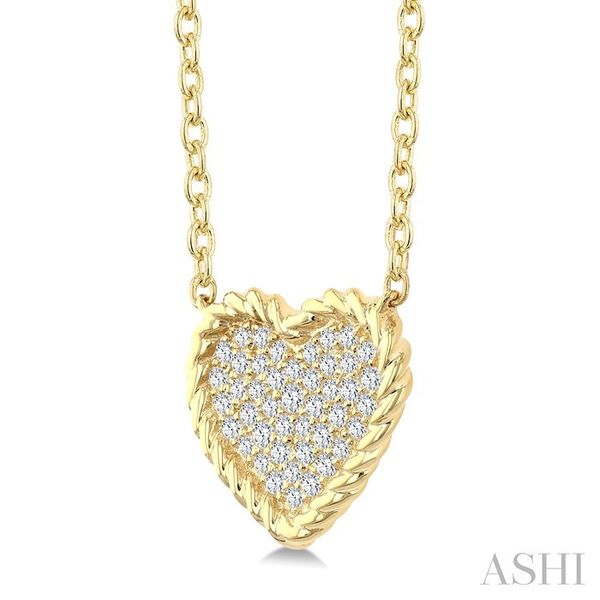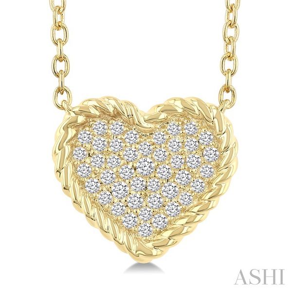 1/5 Ctw Round Cut Diamond Rope Border Heart Motif Fashion Pendant With Chain in 10K Yellow Gold Image 3 Becker's Jewelers Burlington, IA