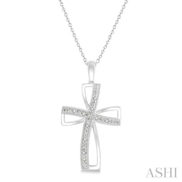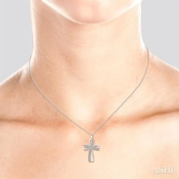 (319) 752-31961/50 Ctw Cross Charm Round Cut Diamond Pendant With Chain in Sterling Silver