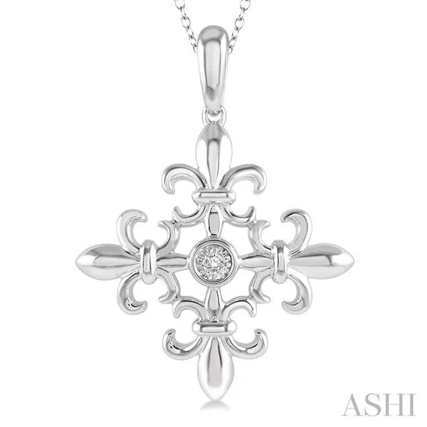 (319) 752-31961/50 Ctw Fleur De Lis Round Cut Diamond Pendant With Chain in Sterling Silver